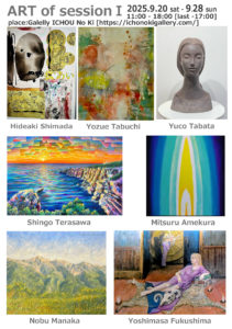 【展示情報】 9月のアトリエ企画展 西八王子駅から徒歩8分にあるギャラリーいちょうの木にて 様々な美術とアートのセッションを7人でおこなう展示イベントを開催します。 入場無料です。 お近くにお越しの際はぜひお立ち寄りくだ […]